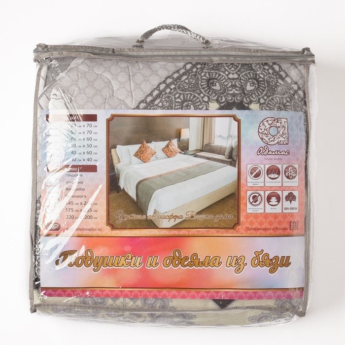 Одеяло Евро облег 200×220 овечья шерсть 200г/м, бязь МИКС 120г/м хл100%