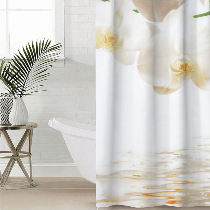 Штора для ванной комнаты Доляна «Орхидея над водой», 180×180 см, полиэстер