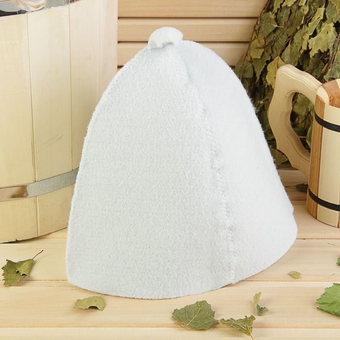 Шапка для бани белая, войлок
