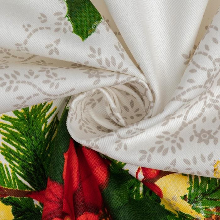 Столовый набор украсит праздничный интерьер. Изделия с эксклюзивным принтом сшиты из хлопкового полотна. Этот материал имеет плотную и упругую структуру, обладает высокой прочностью и на ура справляется с первостепенными задачами: