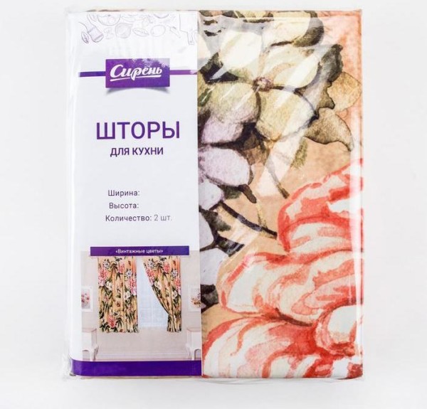 Фотошторы кухонные «Винтажные цветы», размер 145×160 см — 2 шт., габардин