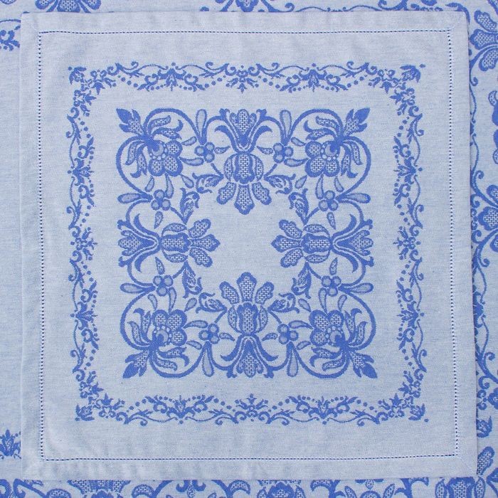 Столовый набор «Этель» (скатерть 150×300 см, салфетки 45×45 см — 12 шт.) цвет синий, хл. с ВМГО