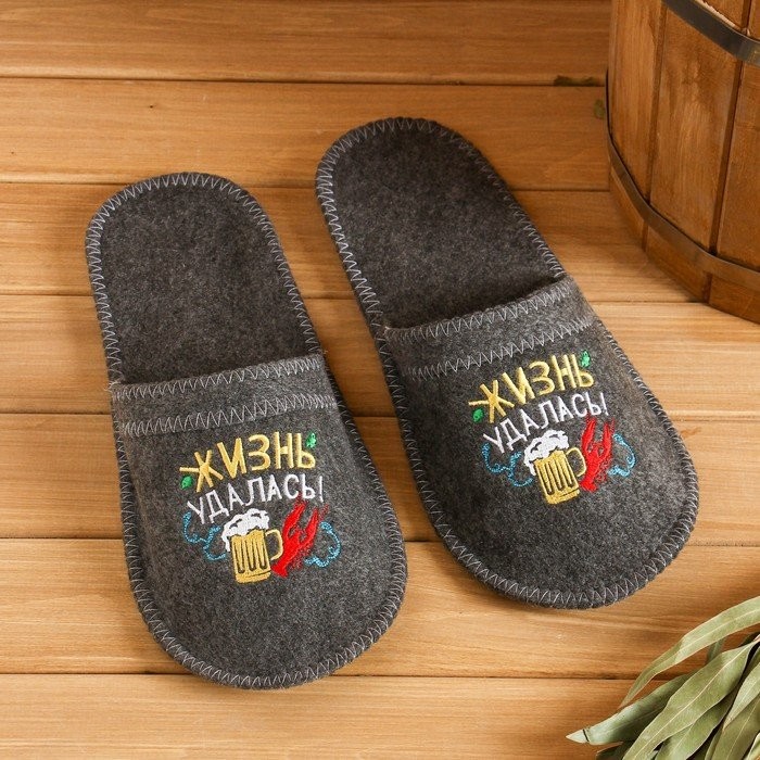 Тапочки банные с вышивкой «Жизнь удалась!»