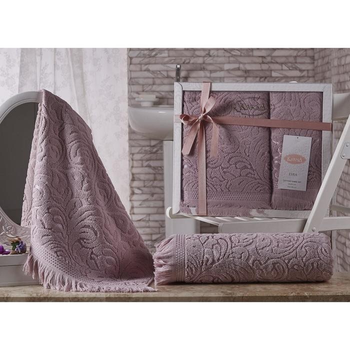 Комплект махровых полотенец Esra, размер 50×90 — 1 шт, 70×140 — 1 шт, цвет грязно-розовый