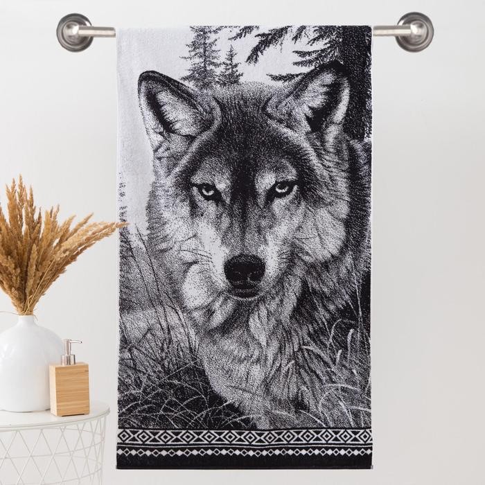 Полотенце махровое Этель ЧБ «Волк» 50×90 см