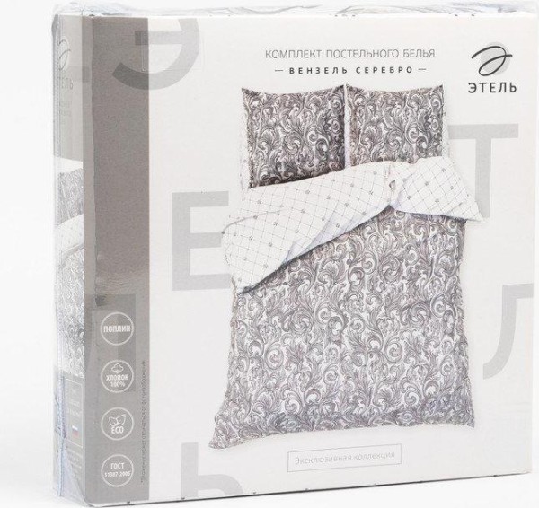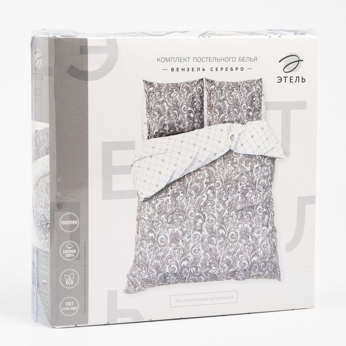 Постельное белье «Этель» 2 сп Вензель серебро 175*215 см, 200*220 см,70*70 см -2 шт