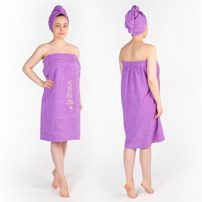 Набор д/сауны махр. жен. (Килт (юбка) (80×150±2)+ чалма), цвет сиреневый