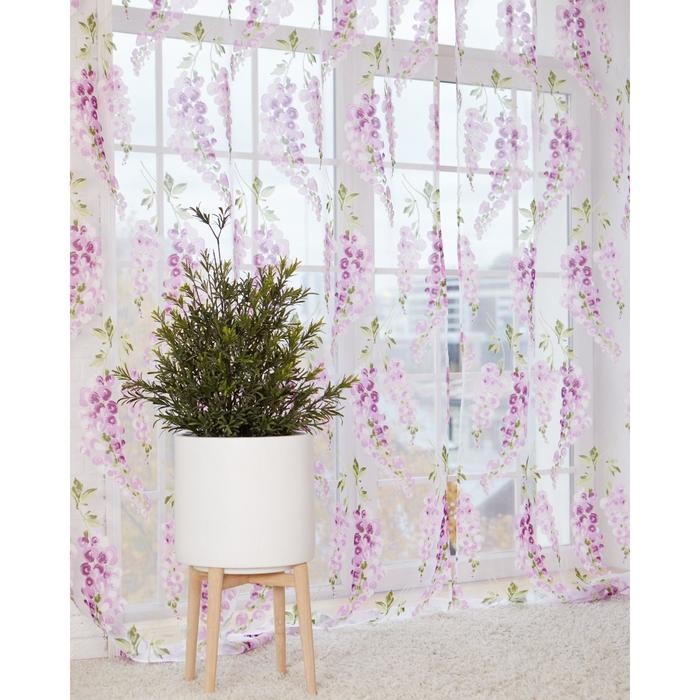 Тюль «Этель» Виноградная лоза (лиловый) без утяжелителя, ширина 135 см, высота 270 см