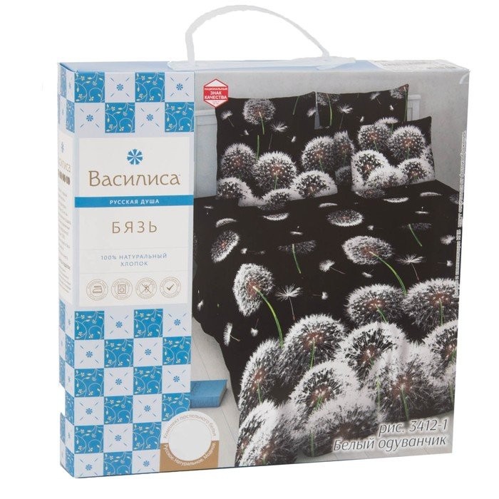 Постельное бельё евро «Василиса» Белый одуванчик 200×215 см, 200×220 см, 70×70 см — 2 шт.