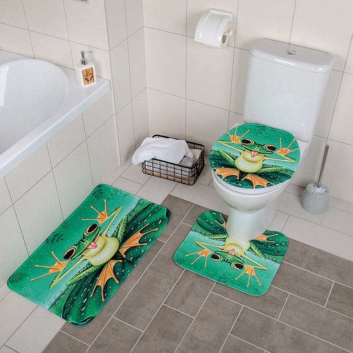 Набор ковриков для ванны и туалета Доляна «Лягушонок», 3 шт: 37×42, 40×45, 45×75 см