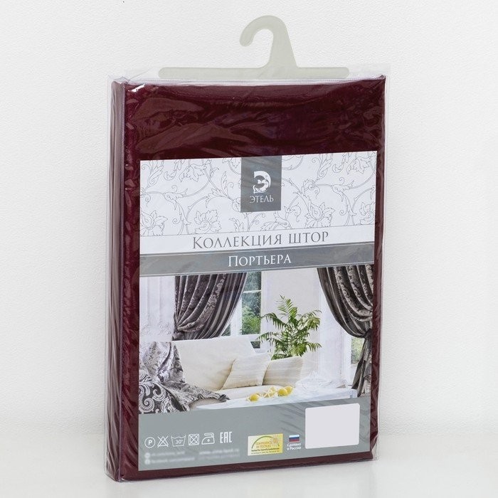 Штора портьерная «Этель» 230×270 см Валенсия Вишнёвый,100% п/э