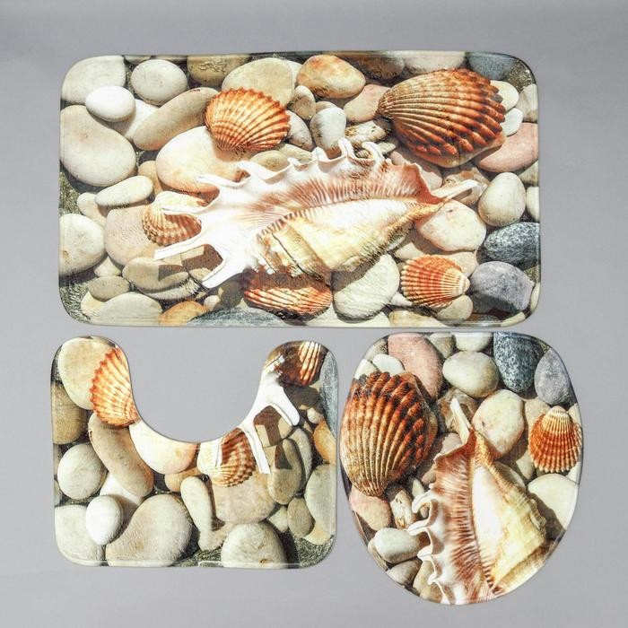 Набор ковриков для ванны и туалета Доляна «Ракушки», 3 шт: 37×45, 37×45, 45×75 см