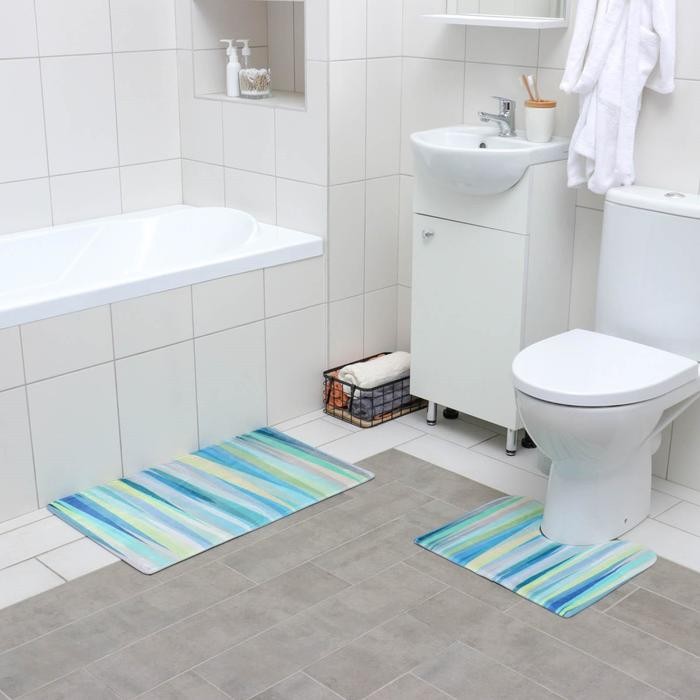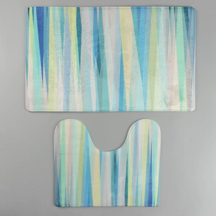 Набор ковриков для ванны и туалета Доляна «Бирюза», 2 шт: 40×45, 45×75 см