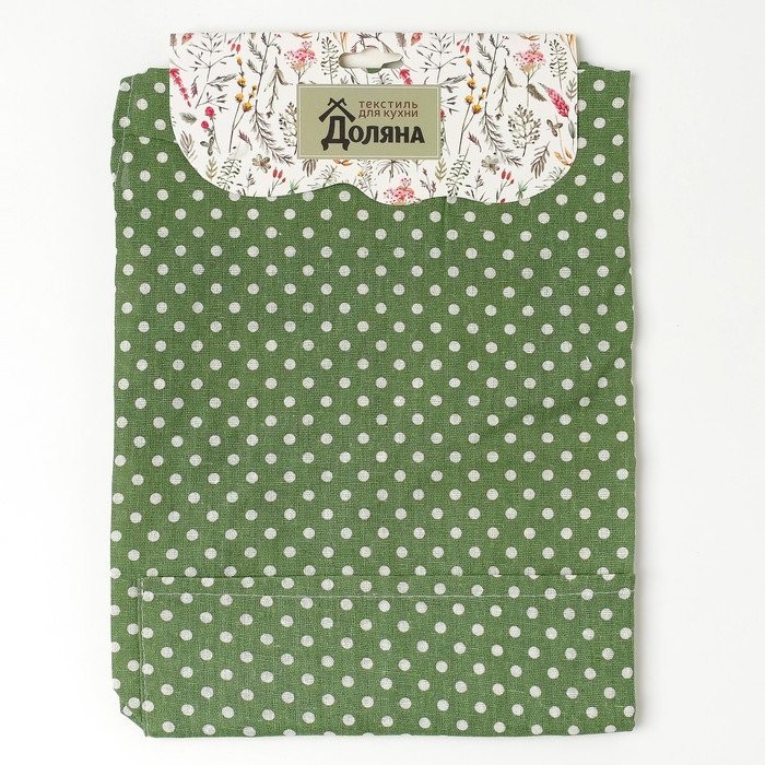 Фартук Доляна «Горох» зеленый, 60х70см, 100%пэ, рогожка 200 гр/м