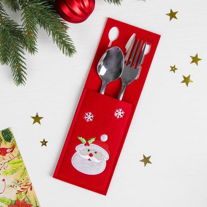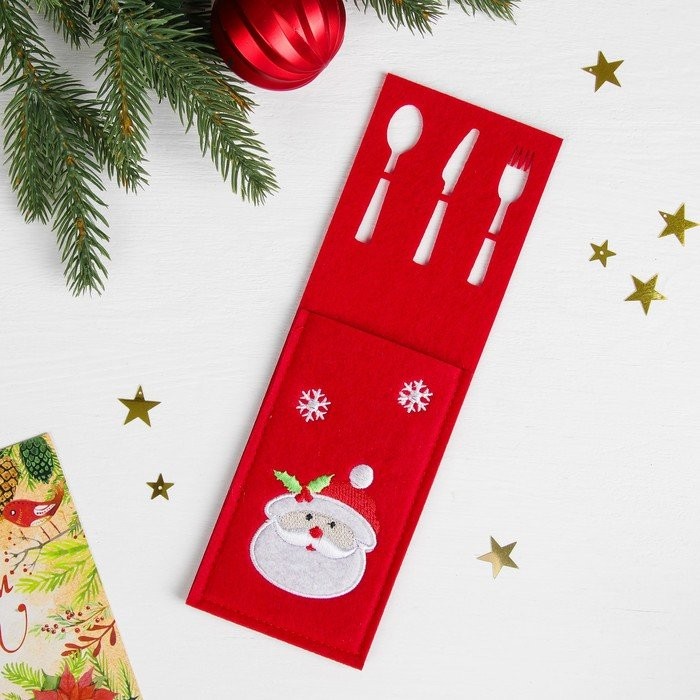 Конверт сделан из фетра и имеет праздничный дизайн.