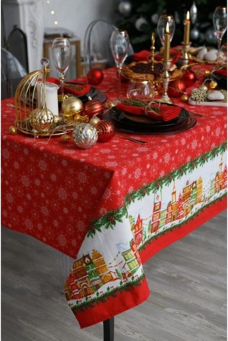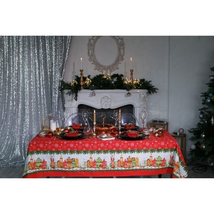 Скатерть Доляна «Новый год: Волшебный город» 220×149 см, 100% хлопок, 164 г/м2