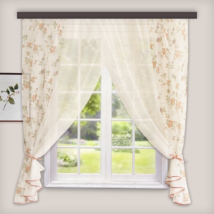 Комплект штор для кухни «Акварель», 280×160 см, цвет персиковый
