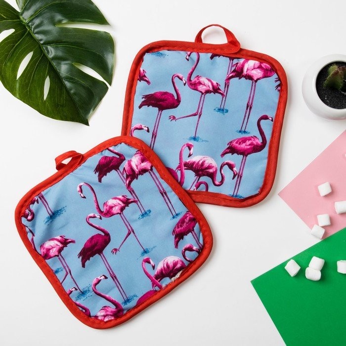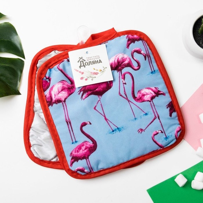Кухонный набор Доляна «Фламинго» прихватка 16×16 см — 2 шт