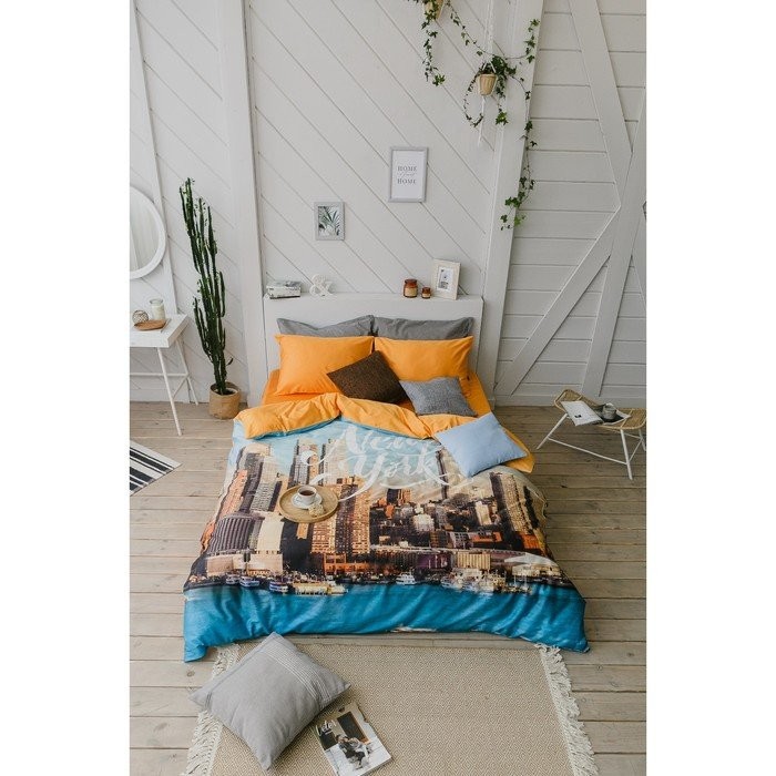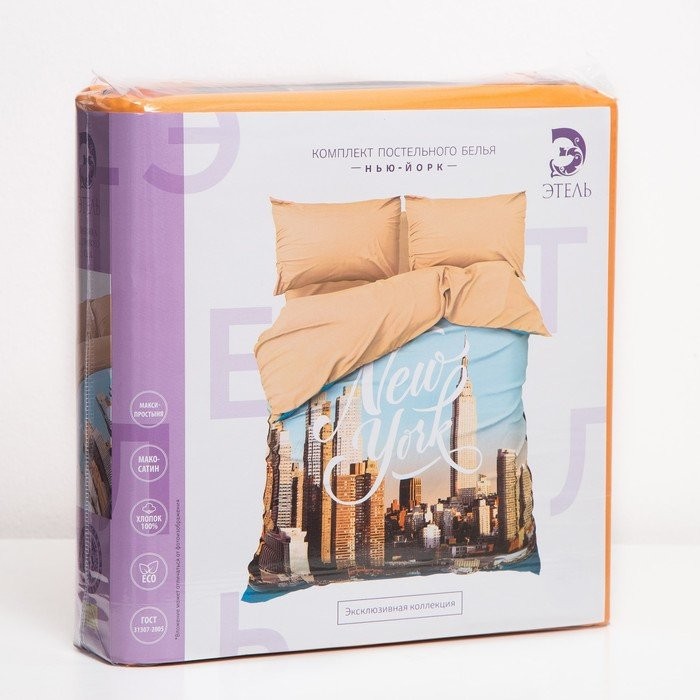 Постельное бельё «Этель» 2 сп Нью-Йорк 175×215 см, 220×240 см, 50×70 см — 2 шт, мако-сатин