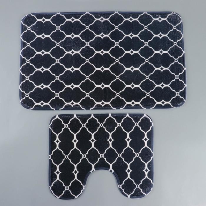 Набор ковриков для ванны и туалета Доляна «Сантра», 2 шт 40×50, 50×80 см, цвет чёрно-белый