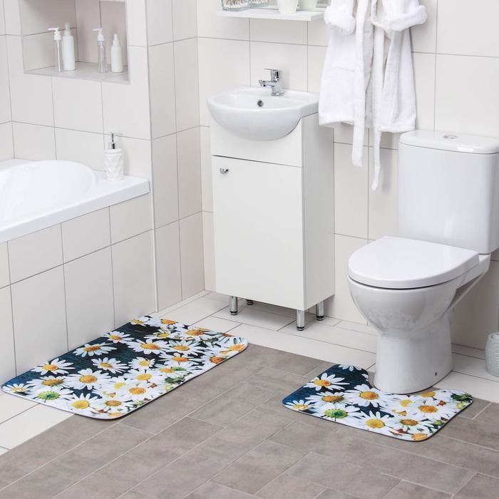 Набор ковриков для ванны и туалета Доляна «Ромашковое поле», 2 шт: 40×50, 50×80 см