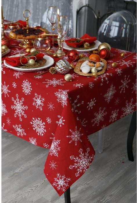 Скатерть Доляна «Новый год: Белые снежинки» 220×149 см, 100% хлопок, 164 г/м2