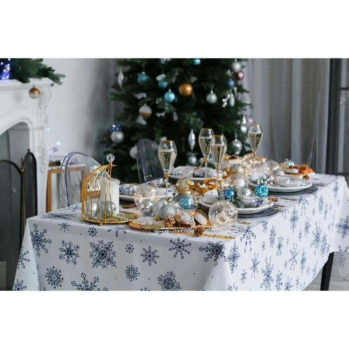 Скатерть Доляна «Новый год: Синие снежинки» 220×149 см, 100% хлопок, 164 г/м2