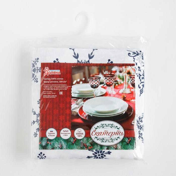 Скатерть Доляна «Новый год: Синие снежинки» 180×149 см, 100% хлопок, 164 г/м2