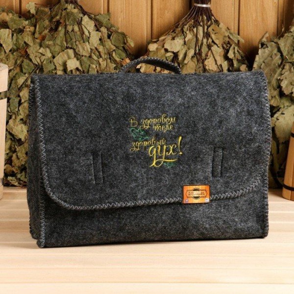 В портфеле можно хранить банные принадлежности и средства личной гигиены. Банная шапка защитит голову от перегрева, волосы от ломкости, а рукавица — от случайных ожогов.