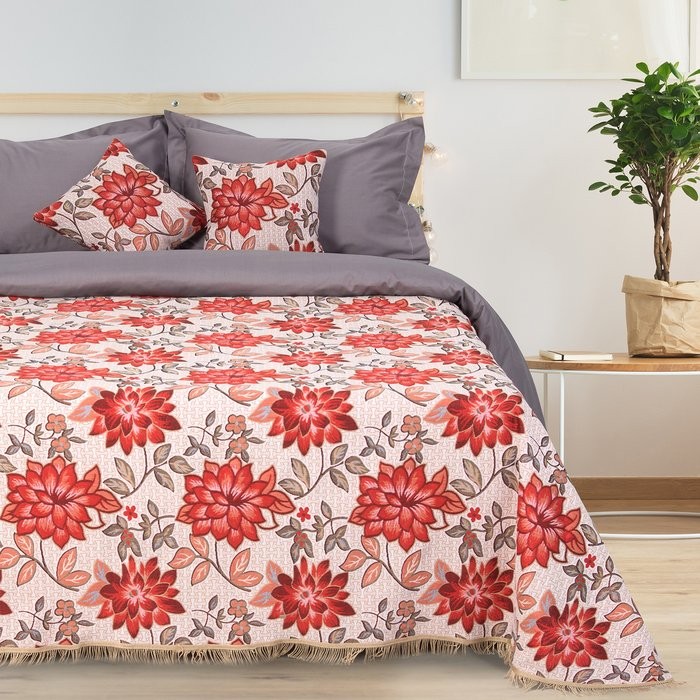 Покрывало гобеленовое Этель «Роскошь» с бахромой, бордовый, 140х200см, п/э 80%, хл 20% (450 г/м2)