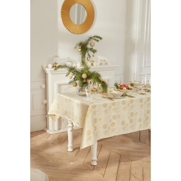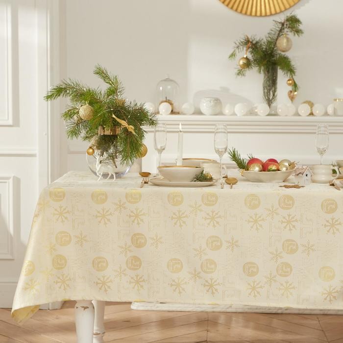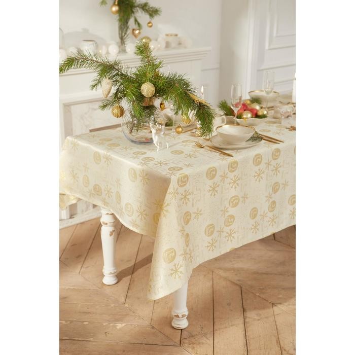Скатерть Этель «Snow time» цв.золотой, 150*220 см, 115 ±10 гр,100% п/э