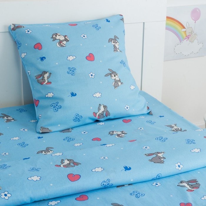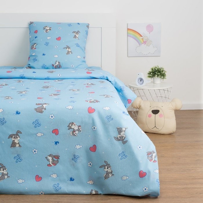 Детское постельное бельё Экономь и Я «Зайки» 1.5сп, цвет голубой, 147×210±5см, 150×214±5см, 70×70±5см — 1шт