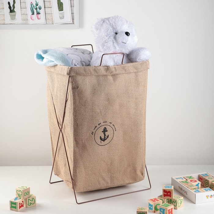Корзина для белья складная «Морячок», 35×28,5×57,5 см, цвет бежевый