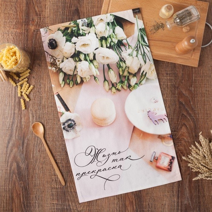 Полотенце кухонное «Пионы» 40×73 см, 100% хл, саржа 190 гр/м2