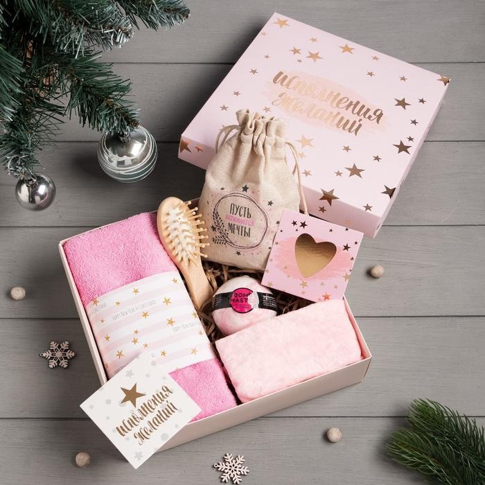 Набор подарочный «Исполнения желаний» полотенце и аксессуары (4 предмета)