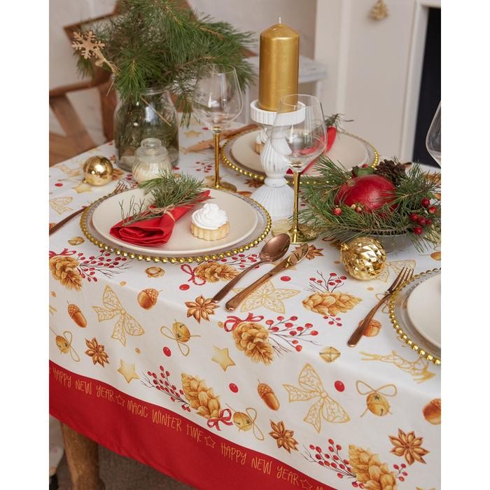 Скатерть «Этель» Golden Christmas 149х180см с ГМВО, 100%хл, 190г/м2