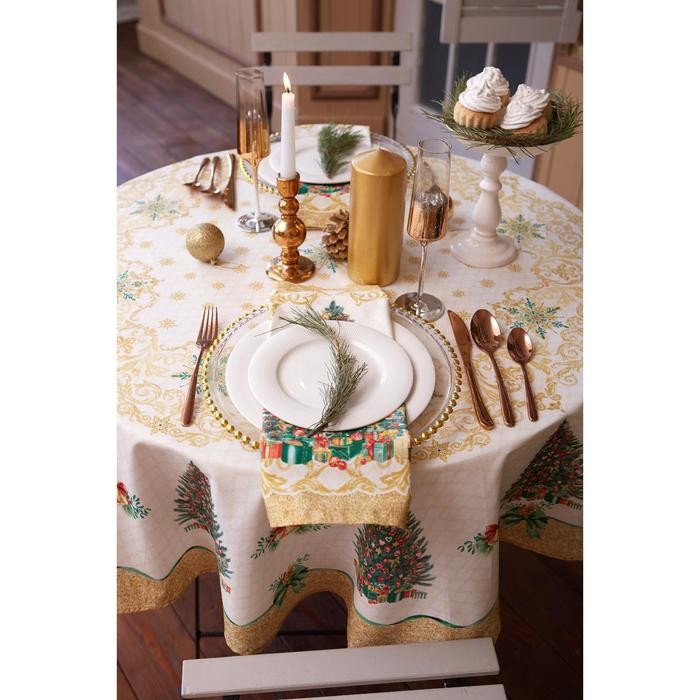 Скатерть «Этель» Golden Christmas d=215 +/- 2см с ГМВО, 100%хл, саржа 190 гр/м2