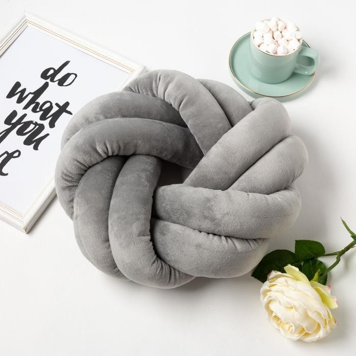 Подушка декоративная узел «Этель», d=33см, цвет тёмно-серый, велюр