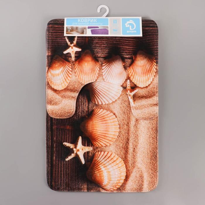 Набор ковриков для ванны и туалета Доляна «Ракушки», 2 шт: 45×70, 39×45 см