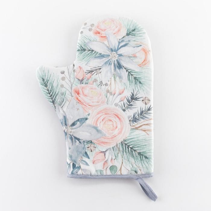 Варежка-прихватка «Christmas flowers» 20х28см, саржа, 100% х/л, ватин 250г/м2