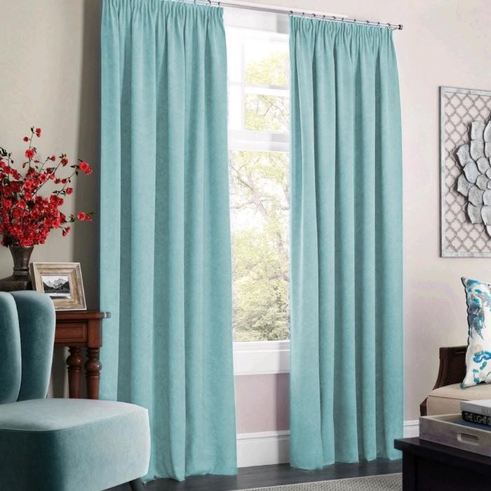 Комплект штор «Софт», размер 145×270 см — 2 шт, подхват — 2 шт, небесно — голубой