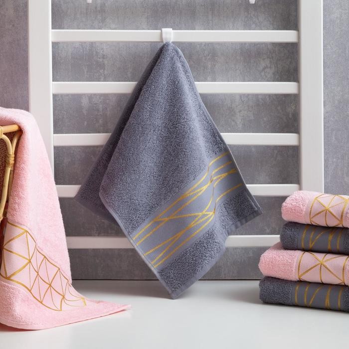 Полотенце махровое «Полосы» серый 30×70 см, 100% хл, 370гр/м2