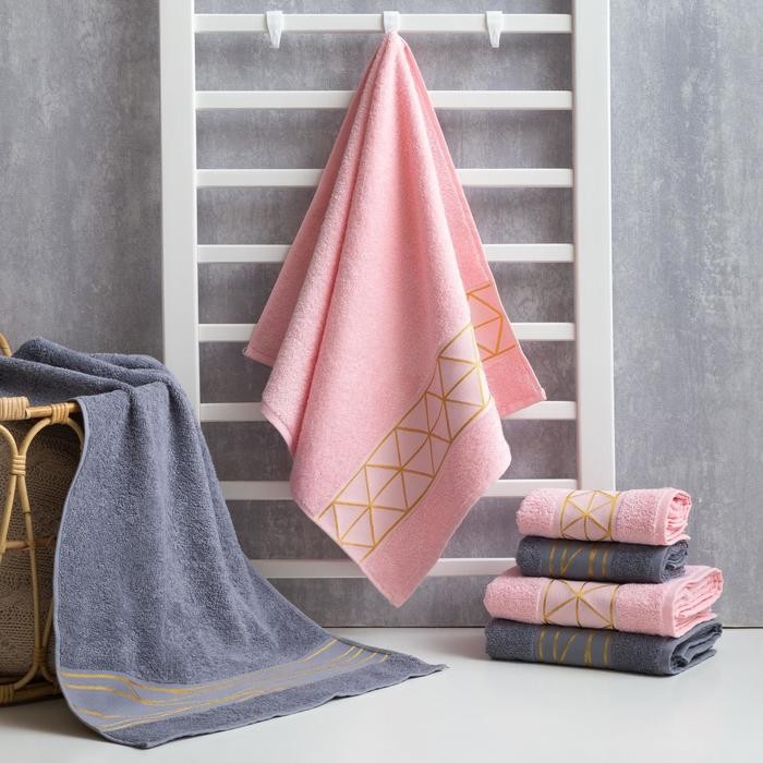 Полотенце махровое «Ромбы» розовое 50×90 см, 100% хл, 370гр/м2