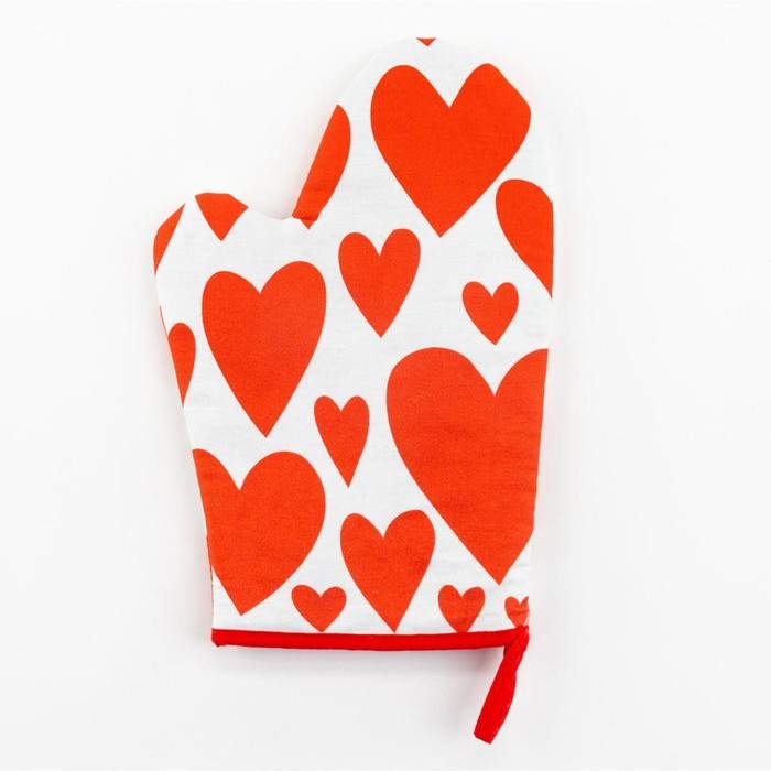 Варежка-прихватка «Этель» Red hearts 20х27см,100% х/л, ватин 250г/м2 (двухсторонняя)