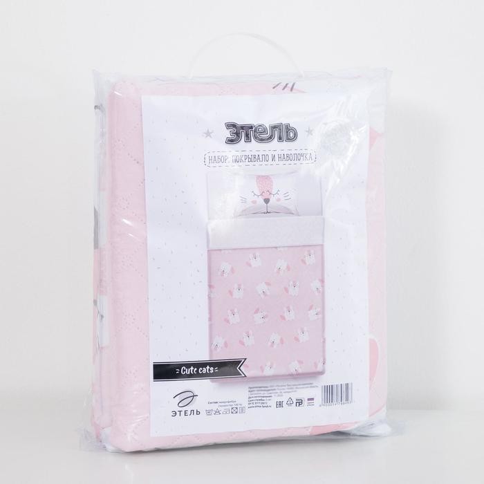 Покрывало детское и наволочка Этель 1,5 сп «Cute cats», 145×210 ±5 см, 40×60 см, микрофибра