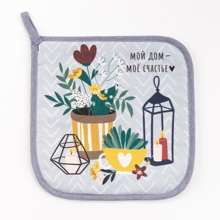 Прихватка «Мой дом — мое счастье» 19×19 саржа,100% х/л,ватин 250г/м2