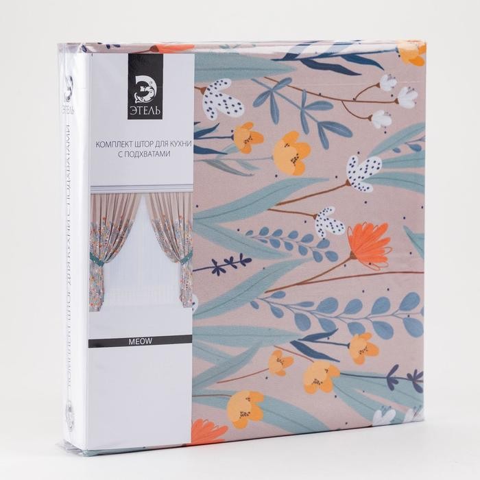 Комплект штор для кухни с подхватами Этель Meow 145х180см-2 шт., 100% п/э