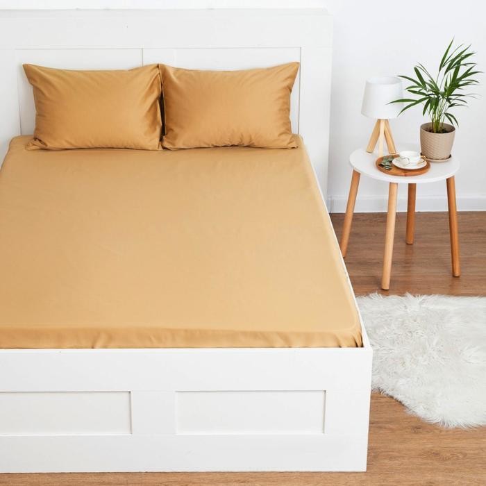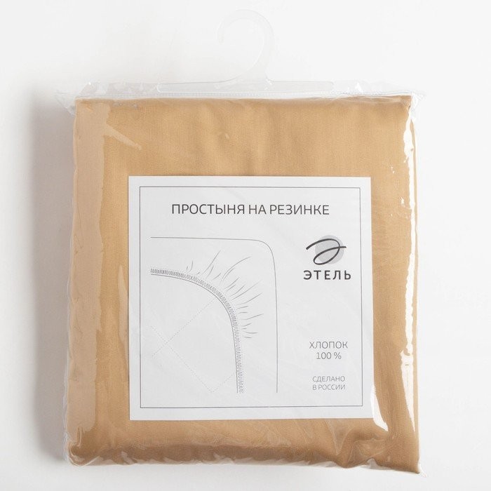 Простыня на резинке Этель 180*200*25 см, цв.песчаный, 100% хлопок, мако-сатин, 125 г/м²