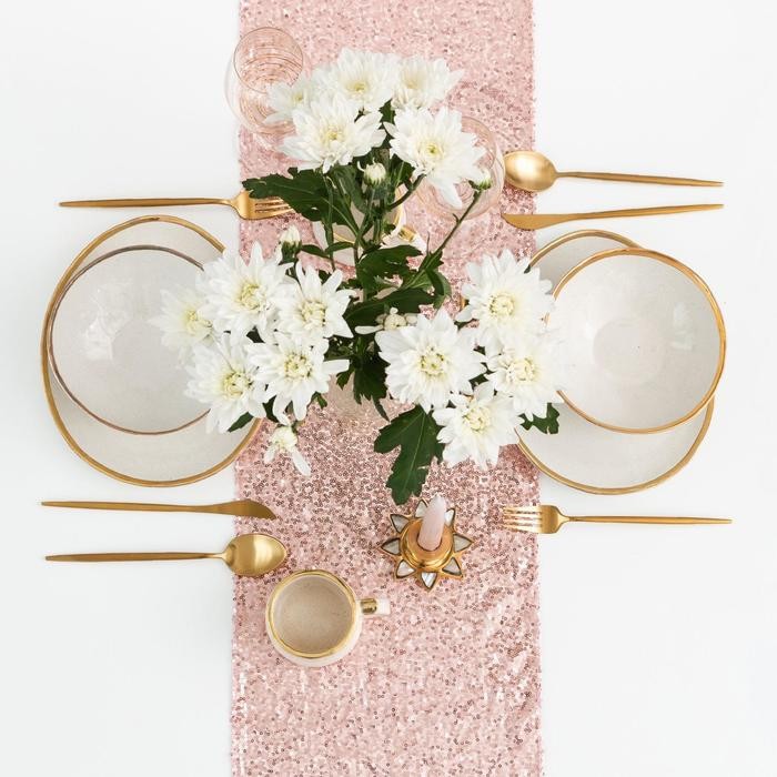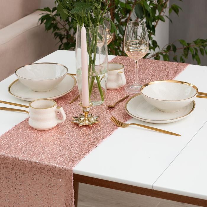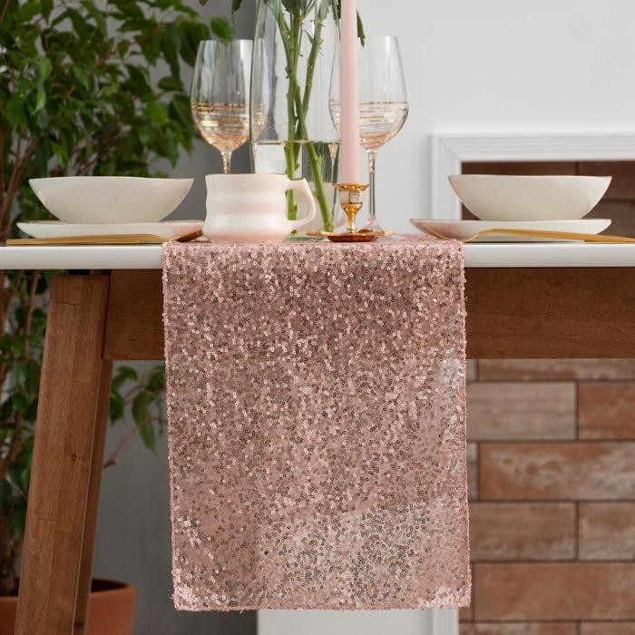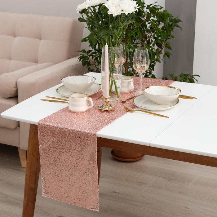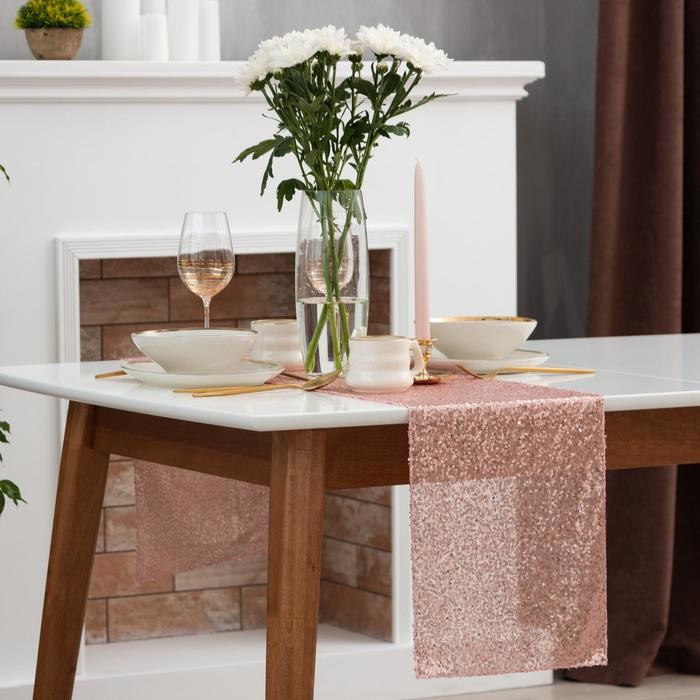 Дорожка с пайетками на стол, цв.пудра, 30*120 см