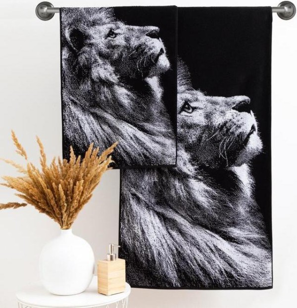 Полотенце махровое Этель ЧБ «Лев» 70×130 см